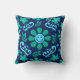 Blue Retro Style Floral and Sun Symbol Pattern Kissen