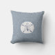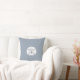 Stranddekoratives Kissen in einem Marineblau-Blau-Weiß-Sand-Dollar-Design. Das Design der Kissen ist ein Imitat Webmuster in Marineblau mit einem navy-blauen und weißen Sand-Dollar-Design in der Mitte. Die Rückseite des Kissens sind Imitate Webmuster Design in der Koordination Marineblau.