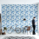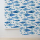 Coastal-inspired wallpaper featuring a blue sardine watercolor pattern in soft ocean tones. Perfect for kitchens, dining areas, or beach-style interiors, this seamless design adds a fresh, Mediterranean feel to your space.