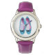 Uhr, Kinderuhr aus Edelstahluhr mit lila Lederarmband