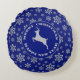 Dieses festliche Weihnachtskissen zeichnet sich durch ein silbernes Schneeflockenmuster auf dunkelkönigsblauem Hintergrund aus. Das passende blaue Zentrum hat ein silbernes Rentierbild in der Mitte des Textes, das Frohe Weihnachten und Glück Neues Jahr sagt. Die andere Seite hat das gleiche Schneeflockenmuster, aber ohne den Kreis- oder Rentiertext. Schöne Dekoration für die Urlaubssaison! *Bitte beachten Sie: Das Bild ist gedruckt und enthält keinen Glitzer.*