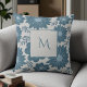 Blue Silver Watercolor Floral Script Kissen