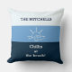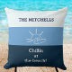 Personalize this Chic Stripes Beach House Throw Pillow with your Family Name and add a Unique Touch to your Beach Home Decor. This pillow features a Rising Sun over the Sea and a captivating combination of Stylish Light Blue and Navy Blue stripes, reminiscent of the ebb and flow of Ocean waves. The gentle hues create a serene atmosphere, bringing the Coastal charm indoors. Also perfect as a Beach Housewarming gift.