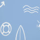 Entspannen Sie Ihre Wanddekoration mit unserem "Blue Summer Ocean Line Art Art Seamless" Mustertapete. Dieses Papier mit minimalistischen Linien-Kunstdarstellungen von Wellen, Sonne und Schiffen verströmt ein Gefühl von nautischem Charme.
