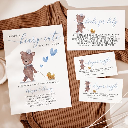 Blue Teddy Bear Bear Bearly Wait Baby Dusche Einladung