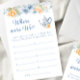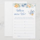 Mit unserem Blue Tea Pot Where we Were We Brautparty Game, einem Fest, in dem Raffinesse den erfrischenden Charme der zitrusischen Freude trifft, laden wir Sie zu einem eleganten Garten ein. Dieses Design verbindet nahtlos die beruhigenden Blautöne mit der lebendigen Energie gelber Zitronen, um ein Ambiente reiner Raffinesse zu schaffen. Dieses Stück enthält zarte blaue Blüten und klangvolle Zitronen, mit der würdevollen Aufnahme eines Teekopfes, die eine zusätzliche Touch von Charme. Die gelbe und blaue Farbe harmoniert in einem Tanz der Eleganz und schafft den perfekten Ton für einen Nachmittag voller Tee, Lachen und zeitloser Schönheit. Klicken Sie auf die Schaltfläche "Anpassen", um diese Vorlage zu personalisieren. Sie können den Namen einschließlich Stil, Farben und Größen ändern. Matching-Elemente verfügbar.