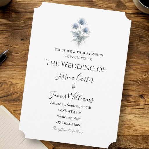 Blue Thistle Scottish Scotland Simple Wedding Einladung