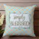 Kopfkissen mit "Einfach gesegnet" im Schriftart auf einem karierten, weich blauen und orangefarbenen Tartanhintergrund, passend zur Rückseite. Fügen Sie Ihre eigene Nachricht auf die Rückseite oder verließ leer. Sehen Sie sich alle unsere Dekoration in unserem Zazzle-Shop an!