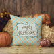 Eine Touch Fallkissen mit unserem "Einfach gesegnet" in Schriftart auf einem weichen blauen und orangefarbenen karierten Tartan Hintergrund, passend zurück. Fügen Sie Ihre eigene Nachricht auf die Rückseite oder verließ leer. Sehen Sie sich alle unsere Feriendekoration in unserem Zazzle Shop an!