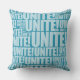 Blue UNITE! Typografie Wiederholungsmuster Kissen