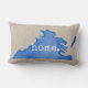 Staat werfen Kissen zeigen Ihren Staatsstolz. Der Staat befindet sich in einer Aquarell-Silhouette mit einem Not leidenden Schriftart für das Wort Zuhause. Der Hintergrund ist die Farbe des Wassers im Leinenstil.