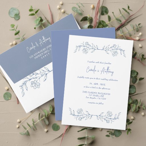 Blue Floral Boho Side Border WeddingDesignt von Dia Sha