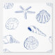 Ein dekoratives, blau-weiße Muschel Sommer Strand Thema Design. Ein illustriertes Design von blauen Muscheln und Seestern, ideal für die Sommerdekoration, Beach Themenabende und personalisierte Geschenke. Diese Muscheln ist perfekt für jeden, der die nautischen Themen, den Ozean, den Strand und handgezeichnete Illustrationen Lieben.