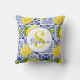 Blue White Lemon Tile Pattern Citrus Monogram Name Kissen