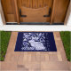 Blue & White Rabbit Bird Willkommen Floral Dedham Fußmatte