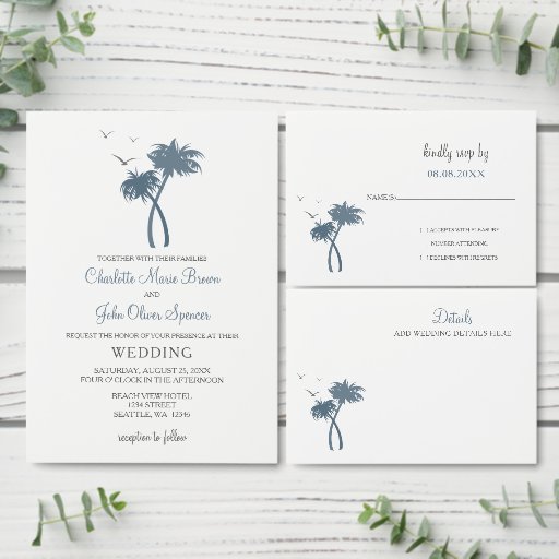 Navy Blue Palm Trees Wedding Invitations SuiteDesignt von Maria G