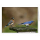 Ein Blauvogel sitzt auf einer Nestbox, kurz bevor er hingeht, um seine Babys füttern