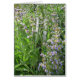 Die Pflanze der duftenden Salbei blühen in den Spitzen der hellblauen Blumen mit einem kleinen weißen Heftzaun im Hintergrund. Klicken Sie auf Anpassen, um Ihren Namen oder Ihre Nachricht hinzuzufügen.