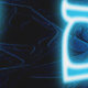 Blau-Weiß-hebräische Textlektüre, "Shalom" (ש ל ו ם - Frieden), überlagert auf einem eleganten, blauen, geätzten Fraktal eines Star of David.