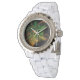Eine wunderbare Damenuhr mit weißem Armband und grün-weiß-kariertem Ziffernblatt. Trägt sich ganz fabelhaft. Exzellenter Druck, sehr klare Farben. Schönes Design.