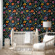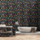 Blume Blossom Muster Khalk zeichnet schwarze Bäckdekor. Lösungen für die Inneneinrichtung.