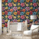 Blume Blossom Muster Khalk zeichnet schwarze Bäckdekor. Lösungen für die Inneneinrichtung.