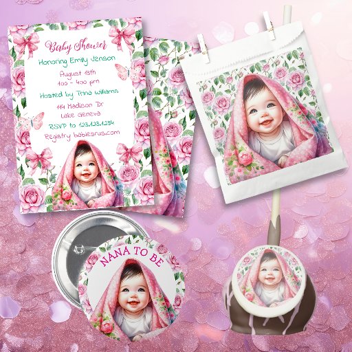 Flowers, Bows and Butterflies Pink Baby Shower Designt von Hilton Lisa