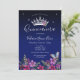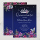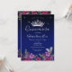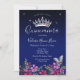 Schöne Imitate glänzen Sterne an der oberen Grenze. Elegantes und trendiges Design mit extravaganter Schrift-Typografie. Alle Texte sind individuell einstellbar und lassen sich für Ihr eigenes Party leicht ändern. Grosses elegantes Quinceañera Design. Erhältlich in verschiedenen Farben. Schöne Prinzessin Tiara mit Blume-Arrangement, blauer Schmetterling mit unten Blumenrand. Verschiedene Hintergrundfarben verfügbar.