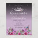 Schöne Imitate glänzen Sterne an der oberen Grenze. Elegantes und trendiges Design mit extravaganter Schrift-Typografie. Alle Texte sind individuell einstellbar und lassen sich für Ihr eigenes Party leicht ändern. Grosses elegantes Quinceañera Design. Erhältlich in verschiedenen Farben. Schöne Prinzessin Tiara mit Blume-Arrangement, blauer Schmetterling mit unten Blumenrand. Verschiedene Hintergrundfarben verfügbar.