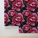 Ein wunderschönes, nahtlos wiederholendes Muster mit sehr großen, dunkelrosa und hellrosa Blume in vollblütigem Set vor einem schwarzen Hintergrund mit dunkelgrünen Blätter um die Blüten. Diese kühne und elegante Landwiese inspiriertes Design hat ein zeitloses und elegantes Sommer / Frühling-Gefühl. Umgestalten Sie jeden Raum zu einem prächtigen und majestätischen Schaufenster mit diesem Design, das für jeden großen Raum geeignet ist, sei es als Wohnzimmer, Bad oder Schlafzimmer. Ideal für Geschäftsleute, englische und französische Hütten, Zuhause und Geschäftsleute.