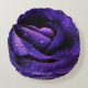 Eine nahe, lila Rose mit Wassertröpfchen, die an den Blütenblättern klammern. Ein elegantes natürliches Design.