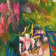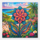 Blume der tropischen Fantasie im Paradies mit kühlen Farben, Blick auf den Ozean und üppiger Dschungel - Farbenfrohe Natur Dreamscape
