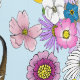 Ein Seitenporträtprofil einer weißen Bergziege. Wilde Blume sind um die Bergziege herum, die alle in einem Tätowierungsstil in blauer Umgebung gezeichnet werden