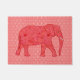 Doormat in einer gemischten medialen Digitalgrafik eines Elefanten vor einem arabesken gefliesten Hintergrund - Blume in tiefroten bis korallenroten Farbtönen mit korallenrotem und weißem Hintergrund