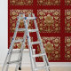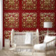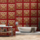 Schälen und kleben Tapete goldene Blume Muster auf rotem Hintergrund. Ein tolles Gaumenprojekt für Mieter, Hausbesitzer und Innenarchitekten. Erstellen Sie ein personalisiertes Aussehen für Ihr Zuhause condo Apartment Büro oder Geschäft. Dekorieren Kerzenhalter Untersetzer Möbel Küche Background Türverkleidungen Kopfbrett Lagerbehälter Container.