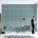 Blumenmotiv in Pfauenblues, grün und terracotta, inspiriert durch marokkanische Farben Fake Fliesen Effekt
