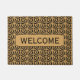 Deko-Fan-Blume aus Gold und Schwarz gemusterte Türmatte. Das Design zeichnet sich durch ein sich wiederholendes Lüftermuster in Gold und Schwarz und eine goldene Blume in der Mitte mit dem Text "Willkommen" aus. Der Text ist anpassbar. Gatsby-Motiv aus den 20er Jahren.