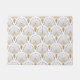 Deko-Fan-Blume-Motiv-Doormat aus Weiß, Gold und Schwarz. Das Design ist mit einem Blume-Muster im Gatsby-Stil der 1920er Jahre ausgestattet.