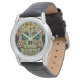 Uhr, Vintage Männeruhr mit schwarzem Lederarmband