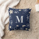 Marineblau mit einem im Retro-Stil gehaltenen Blumenmuster in Weiß und Creme. Personalisieren und fügen Sie Ihren Monogramm-Buchstaben, initial.