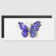 Schmuck, blau, Saphir, funkelnder Schmetterling aus Blume mit blauen, wertvollen Blume mit goldenen Blätter auf weißem Hintergrund.