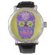 Mein Tag des Toten inspirierten Schädels feiert Leben und Tod mit einer Collage meiner Gemälde von Colorado Wildblumen und zeigt Kaktusblüten, wilde Rose, Kronenweide, Kiefernwälder Geranium, Blauen Flachs, Kolumbine und vieles mehr.