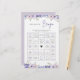 "Blume Finden Sie das Bingo Brautparty Game" ist eine angenehme und kreative Aktivität für Brautpartys. Dieses Spiel bietet wunderschöne lila Blume-Designs, die die Gäste inspiriere, ihre Traukleider zu entwerfen. Mit seinem charmanten Blumenmotiv fügt dieses Spiel der Feier eine Touch Eleganz hinzu. Lass deinen Gästen mit diesem lustigen und einladenden Brautparty ihren künstlerischen Flair und ihre Fantasie zu präsentieren!