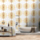 Umgestalten Sie Ihr Zimmer mit der opulenten Eleganz unserer eleganten goldenen Blumen- und Knüppeltapete. Diese Tapete eignet sich für alle Altersgruppen und Geschlechter und eignet sich hervorragend für Wohn-, Esszimmer- und Hochzeitsräume. Es ist in texturiertem und glattem Vinyl erhältlich und lässt sich leicht installieren und entfernen. Es bietet eine luxuriöse und praktische Dekorlösung.