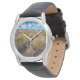 Uhr, Vintage Männeruhr mit schwarzem Lederarmband