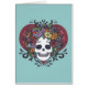 Der hübsche Schädel Damengärtners, mit Blumenstrauß des Blumenhaares, auf einem Herzen mit wenig swirlies. Der Vintage beunruhigende Hippie, gedämpfte Farben, T - Shirts, schwitzt, Karten, Geschenke.