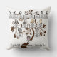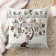 Auf diesem Kissen stehen vier Generationen Ihres Stammbaums. Die Namen und die Fotos sind als Vorlagen Set, die in die Namen und Fotos Ihrer eigenen Familienmitglieder geändert werden sollten. Im Hintergrund befindet sich eine braune Vintage Blumenbaumstruktur-Silhouette.