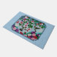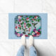 Schwänzende Kolibris fliegen, trinken Nektar aus den Blume in einem bunten Frühlingstraum, der mit lila, roten, weißen und rosa Fuchsias und Petunien gefüllt ist. Realistische Kunstwerke, die aus einer Ölmalerei des Künstlers Crista S. Forest entstanden sind.