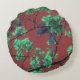 Das abstrakte Blumendesign auf diesem Rundwurfkissen entstand aus einem Originalfoto von HomeWare eines blühenden tropischen Baumes. Der Baum hat dünne schwarze Zweige, die ein lineares Muster im Hintergrund bilden. Es gibt sehr wenige Blätter auf dem Baum, aber es gibt viele winzige Blume in Pompom-Clustern auf allen Zweigen. Das Foto wurde aufgenommen und suchte nach oben in die Äste, mit dem Himmel als Hintergrund. In dieser Version ist der Hintergrund terrakottrot und die Blume sind hellgrün. Das Design hat eine Leinwand Textur insgesamt.