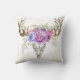 Reizendes Kissen mit einem Wasserfarbbild eines Rotwildschädels und -geweihe schmückte mit Blumen.